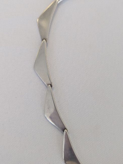 comprising a thirteen wing-shaped link necklace, model '316'; and a six wing-shaped link bracelet, model '238'; both with signatures and stamped 'Denmark 925S'