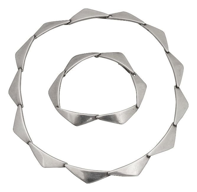Hans Hansen: a Danish Modernist Sterling silver demi-parure,