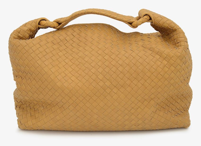 A Bottega Veneta mustard woven handbag
