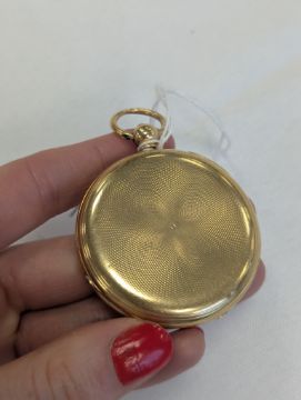 Condition: Flawless enamel dial. Movement is complete and looks as though it would run but is untested and may benefit from a clean and fresh oil. Case has rubbing to edges of engine turning and a few minor dents but otherwise good. No guarantee given to the movement.