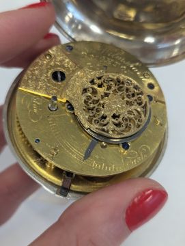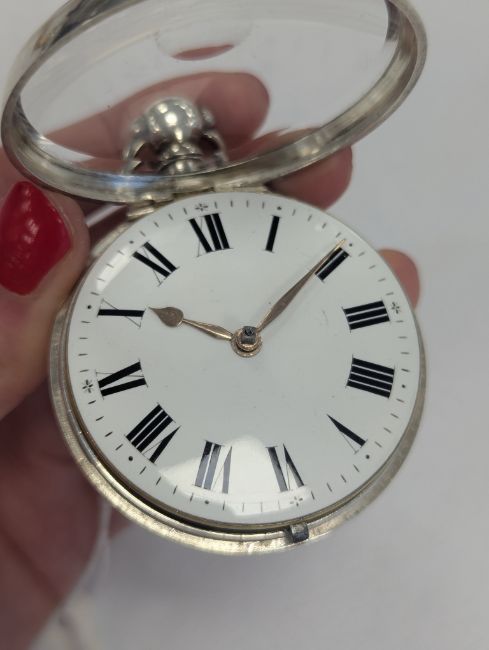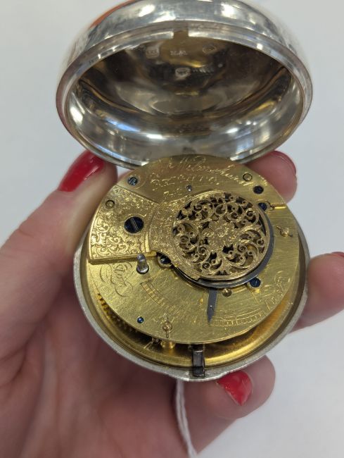 A George IV silver pair cased open face pocket watch, London, 1827,