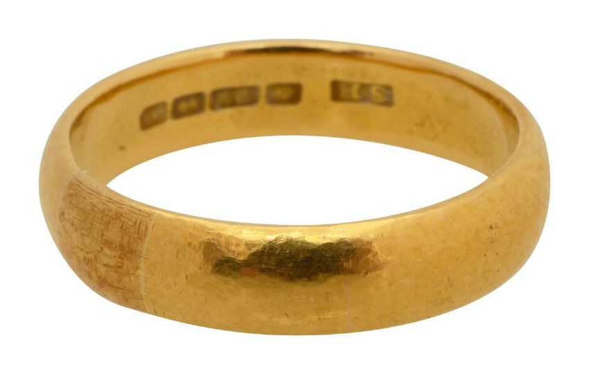 with 22ct hallmark, softy 'D' shaped profile, date mark Birmingham 1922-23
