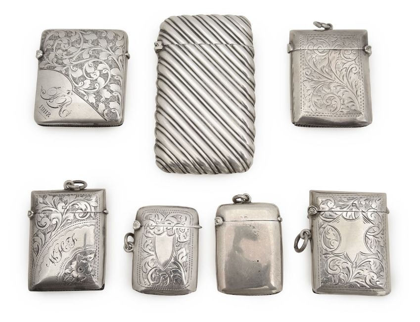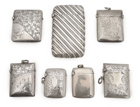 comprising five foliate engraved examples, including two with engraved initials, Birmingham 1901-1945, a Victoria example with gadrooning, and another plain form example, by Smith & Bartlam, Birmingham 1919 (7)