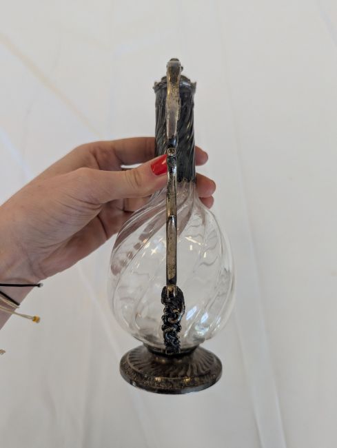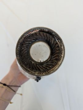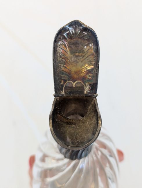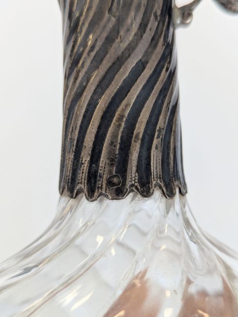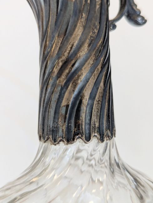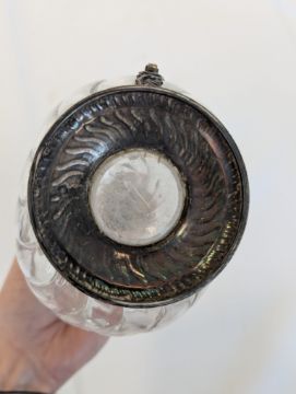 Condition: Heavily tarnished. No chips or cracks to the glass. The Minerva mark is rubbed and nearly illegible.