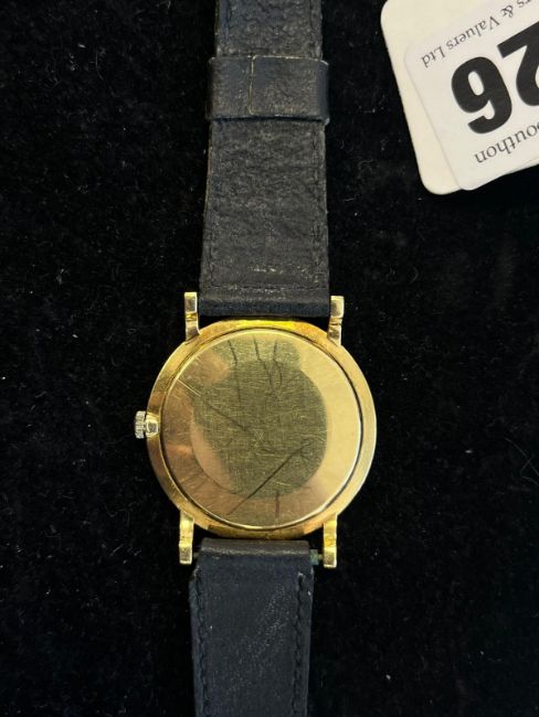 the gold coloured dial with baton numerals, Swiss control marks to the lugs