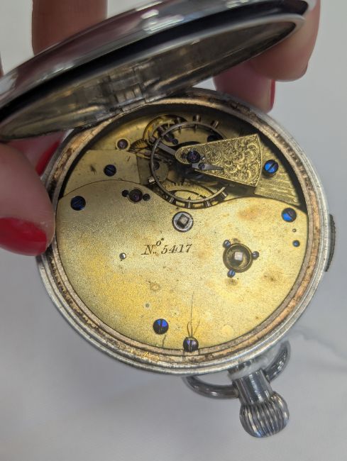 enamel dial with sunk subsidiary state-of-wind and seconds dials, 1/2 plate movement with dummy keyless winding, detent escapement with free-sprung cut bi-metallic balance and blued helical spring, No.5417, plain case.