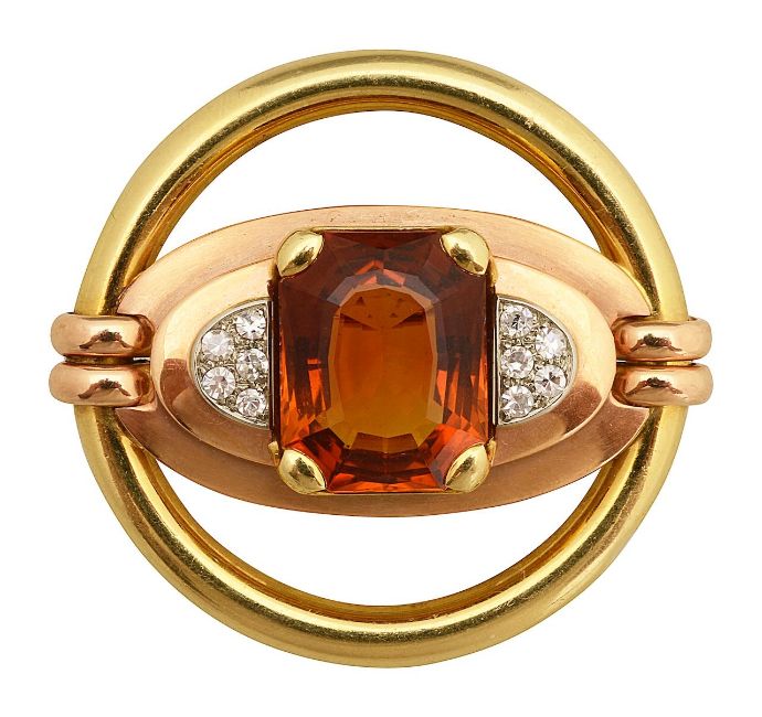 A three colour citrine and diamond brooch