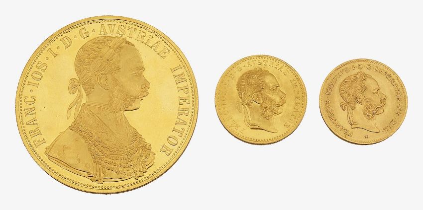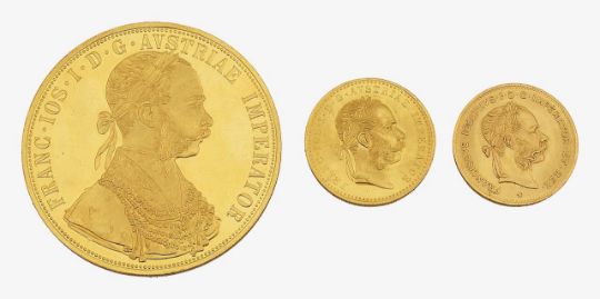 Austrian Empire. Gold Coins: 4 & 1 Ducat 1915, 4 Florins 1892 (3)