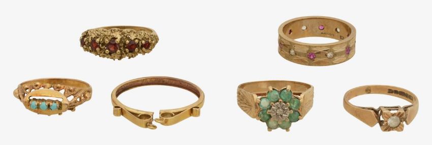 A collection of four 70's rings and two more