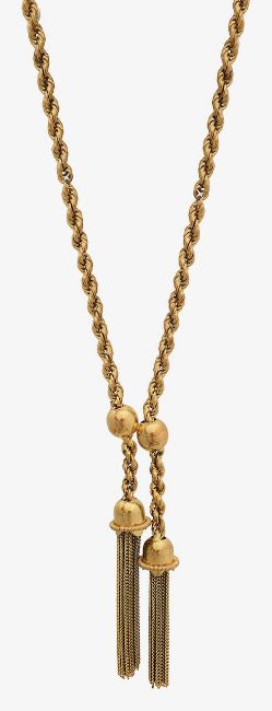 the rope twist chain terminating in double tassel drop pendant, marked on the clasp 375