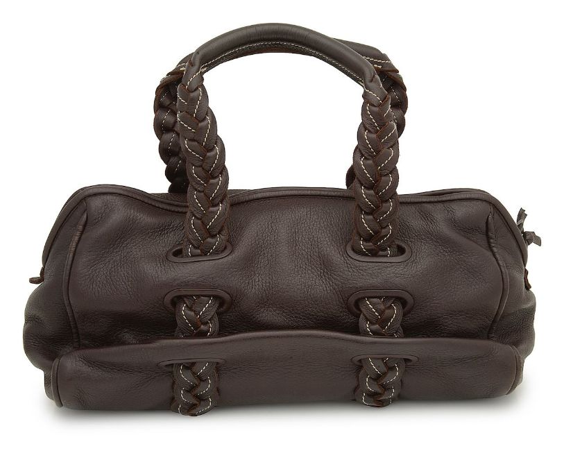 with a Nappa leather exterior featuring adjustable woven handles and contrast stitching with zip closure, interior composed of a soft suede featuring three internal pockets, one bearing the heat-stamp 'Bottega Veneta, Made in Italy', with dust bag