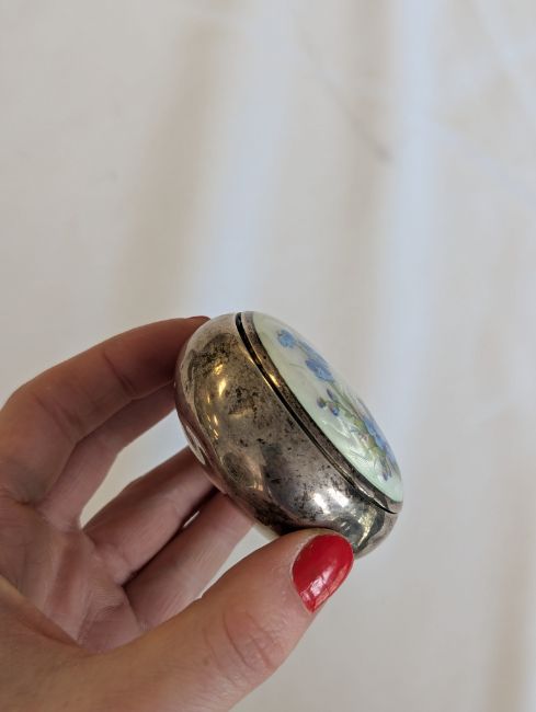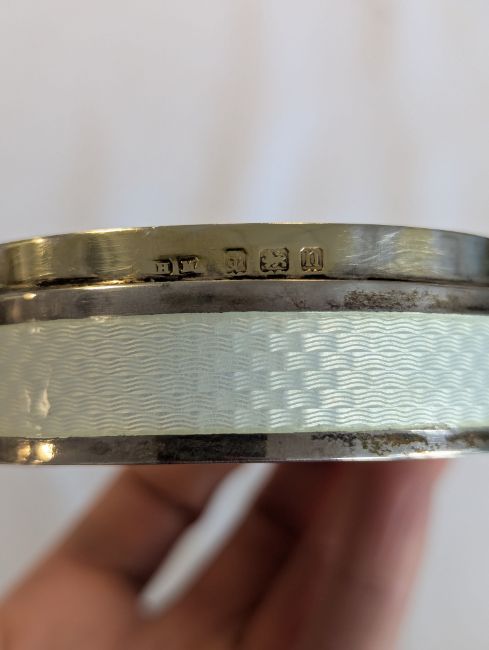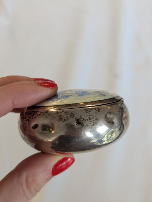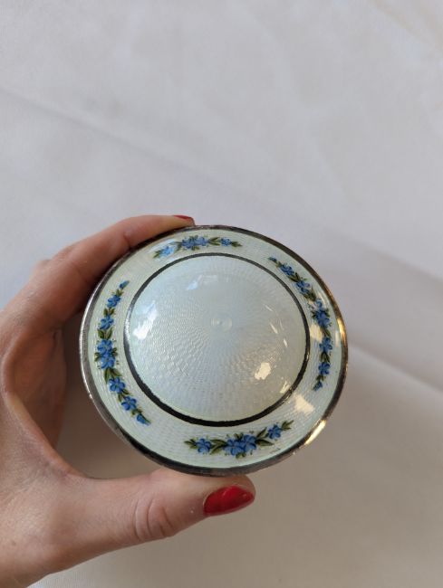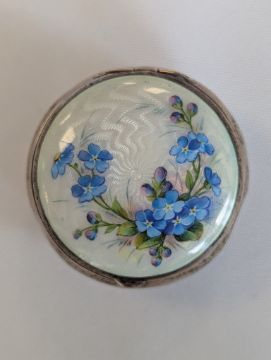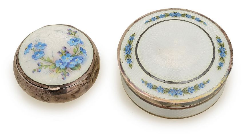 comprising a larger example by Henry Matthews, Birmingham 1912, decorated with forget-me-knots to a pale ground, and a similar Continental example, London import 1901 (2)