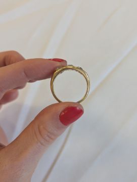 Condition: overall condition good/very good. central diamond spreads 0.60-0.70cts ,PK clarity,I/J colour; side diamonds each spread 0.50-0.55cts, SI clarity, I/J colour (one fluoresces strongly)