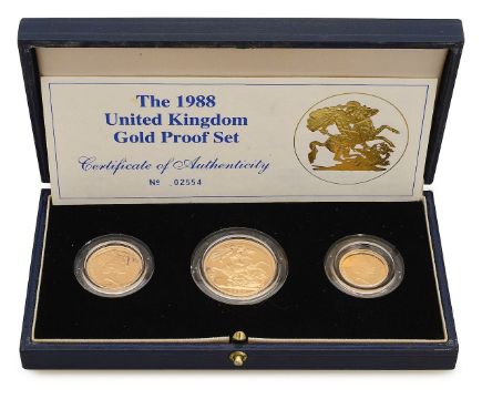 UK. The 1988 Gold Proof Set: Two-Pounds, Full & Half Sovereign (3)