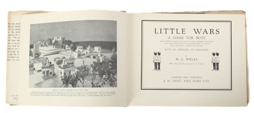 New edition. Landscape 8vo. Original green pictorial cloth in scare original dust jacket. pp. 116. Illustrated with photographs and marginal drawings by J.R. Sinclair. Well's influential work on war gaming, blending military and imaginative play.