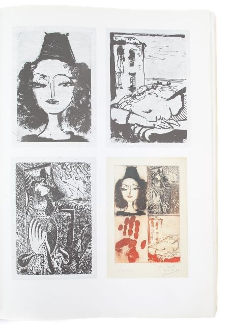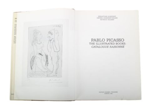 Pablo Picasso. The Illustrated Books: Catalogue Raisonné by Sebastian Goeppert. Translated from the French by Gail Mangold-Vine. Geneva: Patrick Cramer, 1983. Hardcover with original full cloth boards and dust jacket; 'Si large. No. 96.Frontispiece: Homme debout avec masque devant femme assise. 1960. Drypoint, from the edition of 40 accompanying the de uxe copies of this catalogue.' Includes the 156 books, albums and catalogues illustrated by Picasso, pp. 430, illustrations throughout.