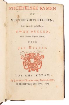 Second edition (re-issue of the 1722 edition). 8vo, contemporary calf, spine decoratively gilt; title printed in red and black, 12 etched emblems by Jan Luiken, ornament to title, pp. [xxiv], 141, [3] index. A collection of sacred emblems with fine etchings by the renowned Dutch artist Jan Luiken (1649-1712). Most of the etchings illustrate biblical scenes, though some include social commentary for which Luiken was well known. One full-page etching shows a man in his study surrounded by books. The emblematic tradition was particularly present in the Dutch Republic, and Luiken's work represents some of the finest examples of the genre, combining religious instruction with artistic excellence.