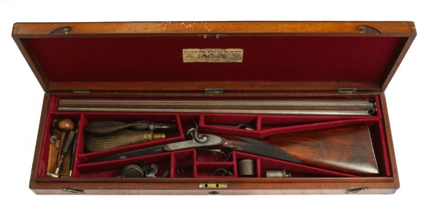 A double-barrel percussion 12-bore sporting shotgun, John Lyell, mid 19th century,