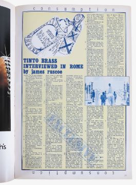 Large format (40 x 28cm). A very rare first issue of the short-lived UK style magazine, with only six numbers ever published. Striking cover featuring Divine and Salvador Dalí in a Warhol-esque design by Janetta Lewin. Highlights include: Helmut Newton's 'Sleepless Nights' double-page feature; Terence Donovan's four page minimalist. armour-inspired fashion story; men's fashion styled by Michael Roberts with the Jean Genet Formation Dancers; beauty by Willie Christie; Northern Ireland photo-essay with IRA- supplied images and Don McCullin from ITV's 'This Week'; Marcel Marceau interview; Jean- Paul Goude's early photographs of 42nd street, New York; Tinto Brass interview; six-page Rolls Royce and Bentley fantasy feature; Andrew Logan jewellery; with further features on Cheryl Ladd, Fauirouz and gambling.