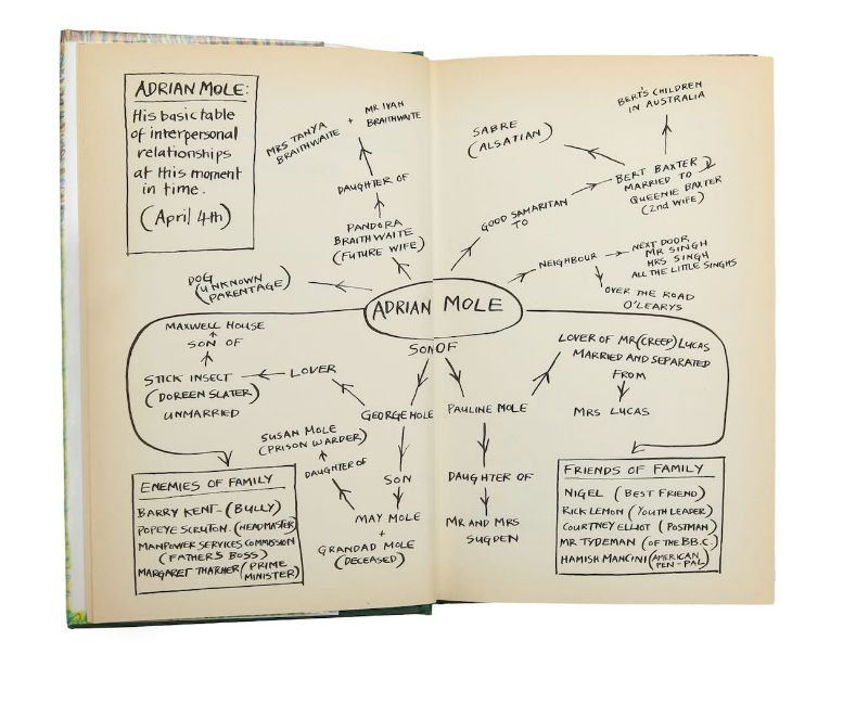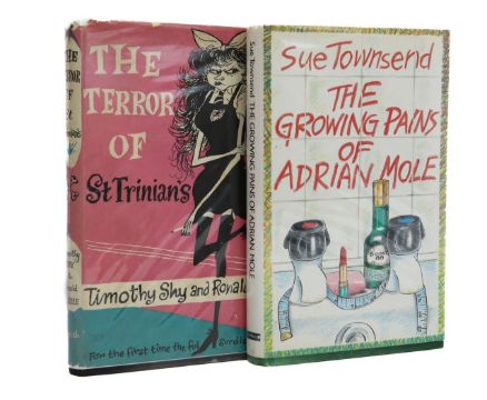 Shy (Timothy) & Searle (Ronald), 'The Terror of St Trinian's.'London: Max Parrish & Co Ltd., 1952.First edition. 8vo, hardback with original dust jacket, bound in black cloth with gilt lettering and illustration to front board and to spine, pp. 128.Townsend (Sue), 'The Growing Pains of Adrian Mole.'London: Methuen, 1984.First edition. 8vo, hardback with original dust jacket designed by Caroline Holden (additional drawings in text), publisher's green cloth with gilt lettering to spine, pp. 192.(2)20 x 13cm.Condition: Good.Provenance. From a Private Collection of children’s illustrated books formed over the past fifty years.