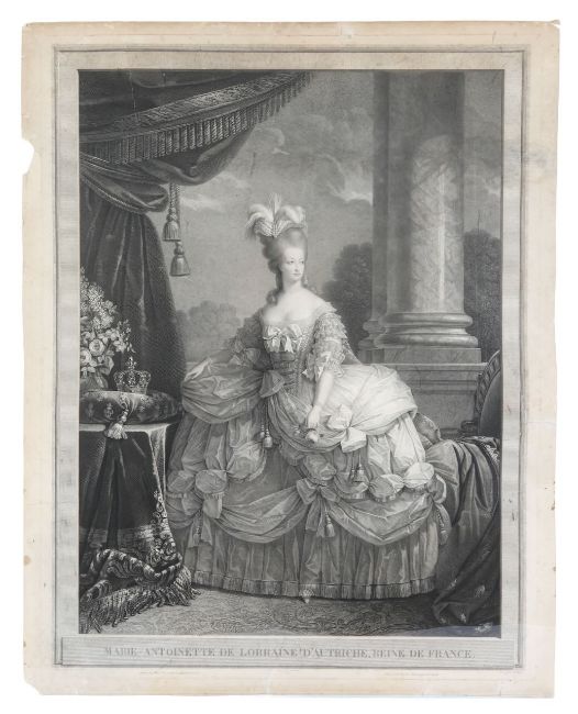 Marie Antoinette, Queen of France (1755-1793), engraving (after Elisabeth Louise Vigée-Le Brun), originally attributed to Alexander Roslin (1718-1793), drawing - revised composition; Monanteuil, Roger (engraver), Chatain (printer), Pieri-Benard, Paris, 1828, unframed (2)