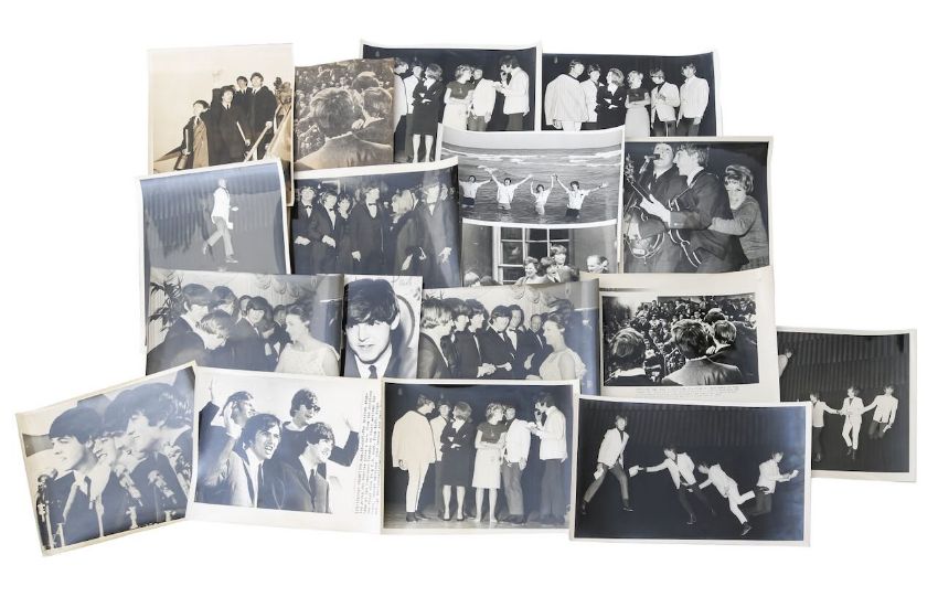 A collection of black and white Beatles publicity photographs