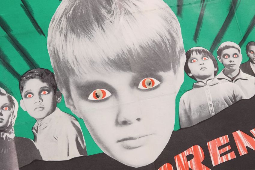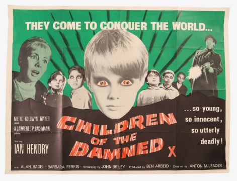 Children of the Damned (1964) rare British Quad film poster, with lenticular eyes, Metro Goldwyn Mayer British Studios76cm by 101cm (30" by 40")Condition: folded but rolled for significant periodsmall title in oencil and numbered on top of reverse, should be easy to erase and does not affect image