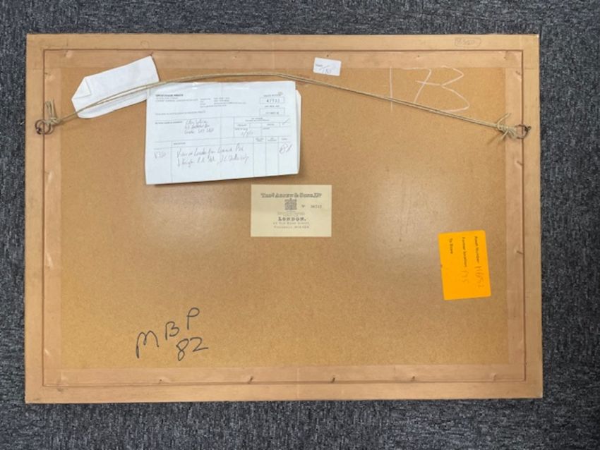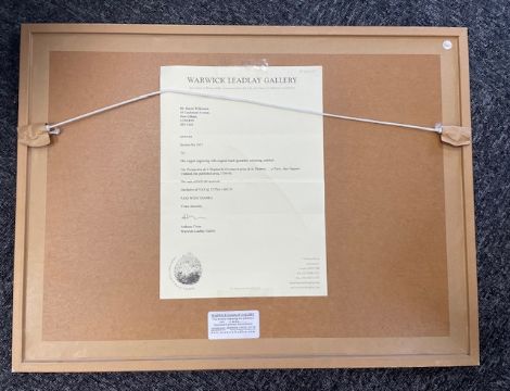 Provenance: Thos. Agnew & Sons Ltd. Grosvenor Prints. Warwick Leadlay Gallery with additional label from same gallery stating 'genuine and authentic.'