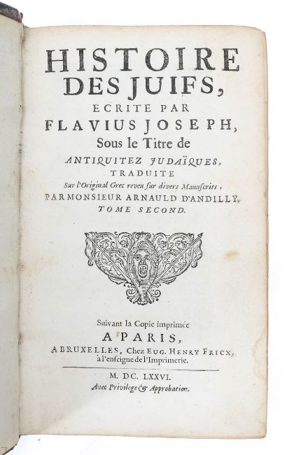 'Histoire des Juies, Ecrite par Flavius Jospeh, Sous le Titre de Antiquitez Judaiques , Traduite'