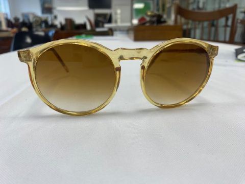 A pair of 1970s sunglasses purported to have belonged to John Lennonwithout prescriptive lenses, transparent 'honey' coloured tinted glasses, stamped Korea to the arm, Condition: Property of Actor Stephen Buckley (stage name Stephen MacKenna) who played John Lennon in the Dick Clarke film 'Birth of the Beatles' 1979. As per the letter of provenance, Stephen was given sunglasses circa May 1980 by Cindy Rebello who worked for the Lennon's after she failed to arrange a meeting between the two following the promotion of the film and offered the glasses and the following lot as some compensation."To whom it may concern. In 1979 as an actor I was offered the role of John Lennon in a film called, birth of the Beatles. (a Dick Clark production) after filming finished I flew to LA. I was then asked if I would do a tour of Australia to promote the film. having done that, I returned to LA for Christmas. I was contacted by a Cindy Rebello who said she worked for the Lennon s in the 1970s and was still in touch with them. what her role was I can't remember.  she suggested I stop over in NY on my back to London. I spent a few days in NY did a couple of Radio interviews, and met Otto Preminger. she said she was talking Yoko and trying to arrange a meeting, but that never happened. I then came back to London. I then went back out LA to do an advert for American Express. on my return she suggested I stop over again in NY which I did.  this must have been May 1980. she said she had talked to Yoko about a possible meeting as John had seen the film. as john was working on a new album (double fantasy) it would be later in the year.  i was naturally disappointed but Cindy then said I could have the sunglasses that John had given her (which he had the same style of sunglasses made into prescription lenses) also the autographed book plus 3 photos she had taken of John and Harry Nielson. I left for home with Cindy saying she would try to arrange a meeting November December that year. I lost touch with her and sadly the events of DECEMBER put an end to my hopes. I'm sorry I can't give dates and times it was long time ago, but it did happen and I think she was genuine when she gave me the items.I hope this is of some help."Stephen Buckley