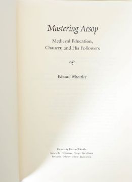 3) Wheatley (Edward), 'Mastering Aesop'. Medieval Education, Chaucer, and His Followers. University Press of Florida. 2002. 8vo, hardcover, with dust jacket, pp. 227.