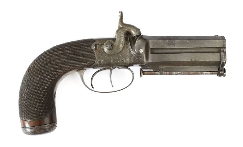 A Victorian percussion double-barrel over and under pistol, Forsyth & Co. London,