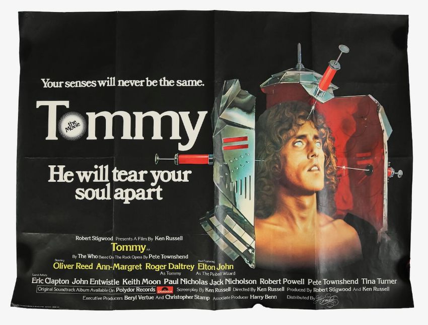 scarcer version of original rock opera poster, starring Roger Daltrey, directed by Ken Russell