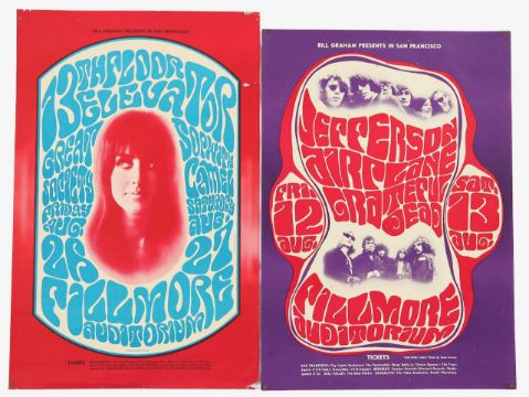 Jefferson Airplane and 13th Floor Elevator music posters- good prints, of some age, but not thoight to be 1960's in date