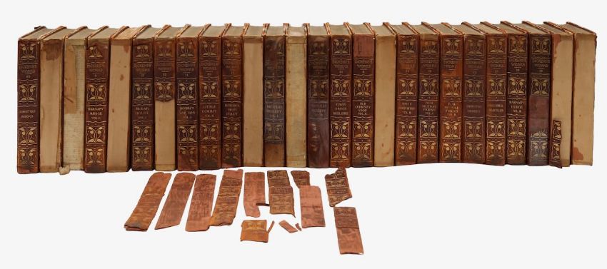 'The Complete Works of Charles Dickens', New York &b Chicago: E.R. Dumont, comprising 26 of 30 set, numbered 236 of 1000 (missing 1,2,23,26), half calf, elaborate gilt tooled spines, marbled boards and endpapers (26)
