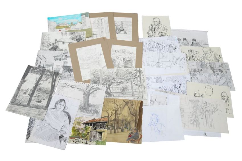 A large quantity & variety of works on paper; mainly in pencil, crayon, ink & watercolour.
