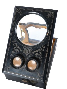 A Victorian stereoscopic viewer with a selection of cards