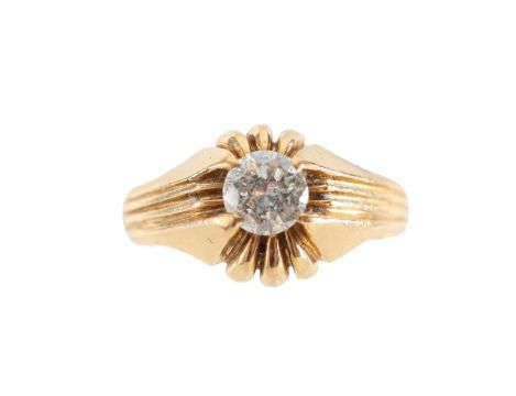 with a centre brilliant cut diamond held in a gypsy cut down setting engraved 3,12,59, indistinct mark
