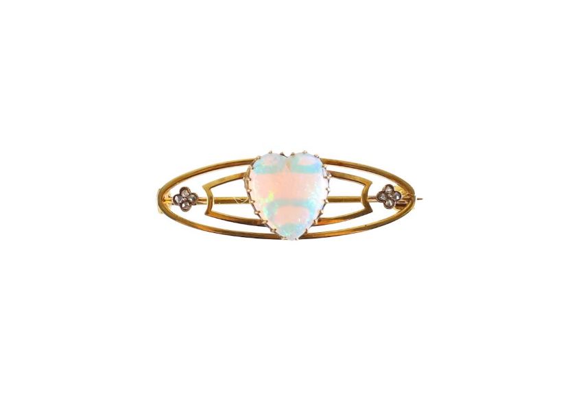 An opal heart brooch with diamonds