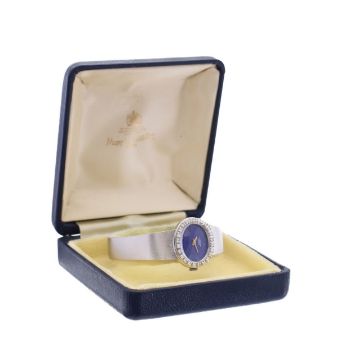 the oval blue malachite dial with gilt hands, diamond bezel and bracelet marked 585 to clasp