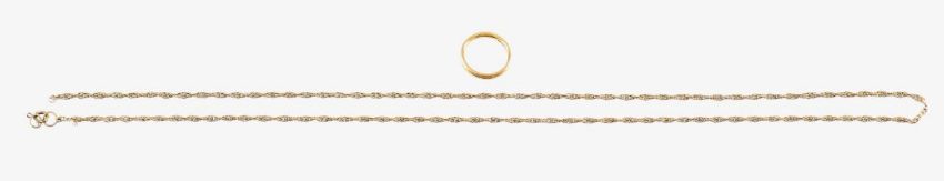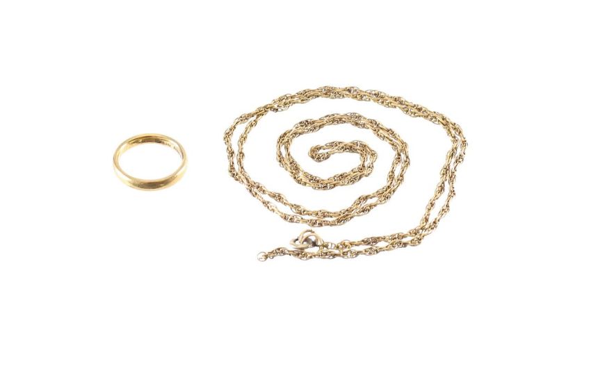 A 22ct gold band ring and a fancy rope link necklace