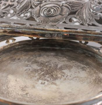by Wakely & Wheeler, Dublin 1926, the domed cover decorated with a finial modelled as a bud amongst leaves, the pedestal form body with pierced decoration of roses and flowers