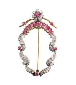 A ruby and diamond-set brooch