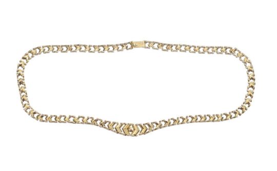 with 9ct hallmark to clasp, fancy yellow gold chevron link necklace gently graduated