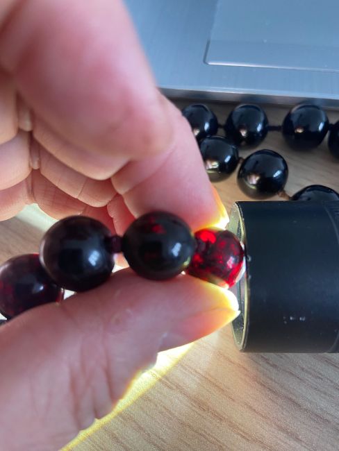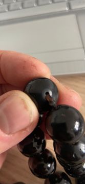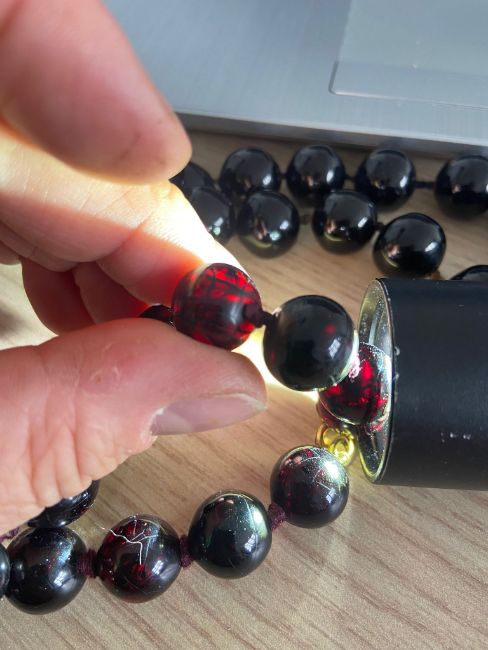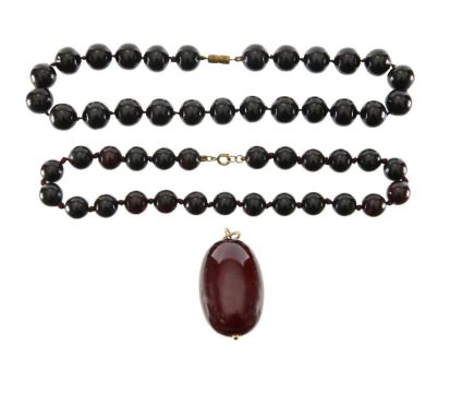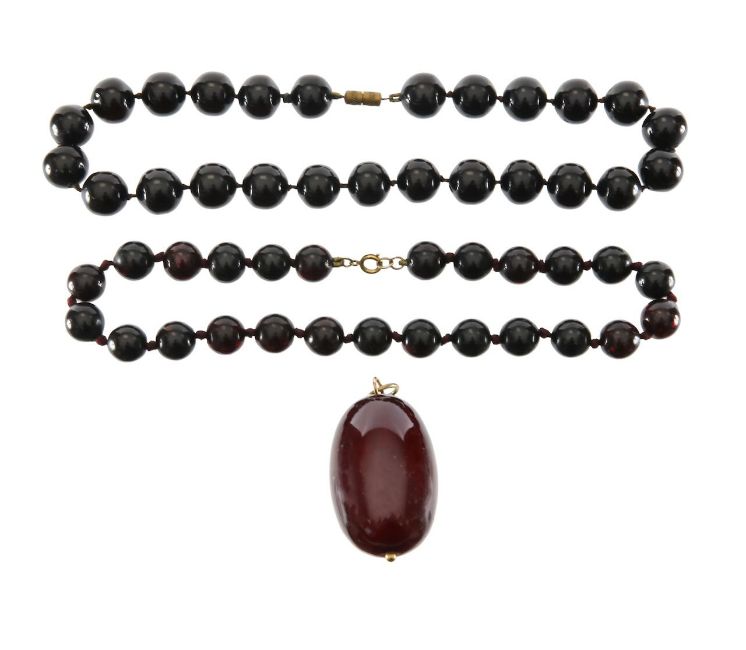 the beads of similar sizes, together with a large amber bead with pendant mount