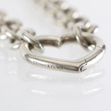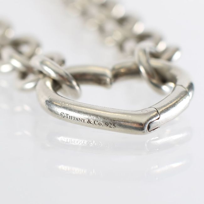 stamped Tiffany & Co, 925, London 2004, with an open heart clasp, on a belcher chain