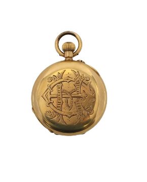An 18K gold half hunter lady's keyless pocket watch