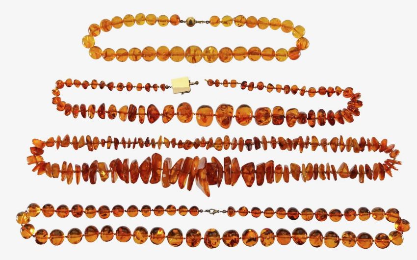 Four sets of amber beads