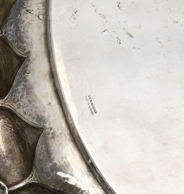 marked 'Sterling, Made in Hungary', of oval form, with a scalloped edge