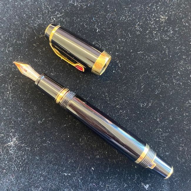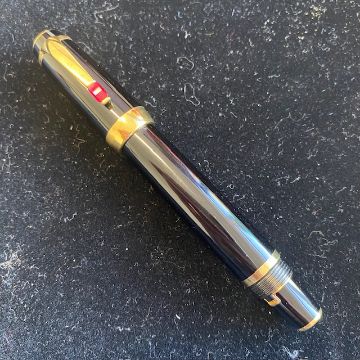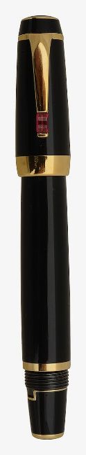 with a 14ct gold retractable nib, marked 4810, in a resin case, with gilt metal mounts, the clip inset with a synthetic ruby, serial no. HY1002219